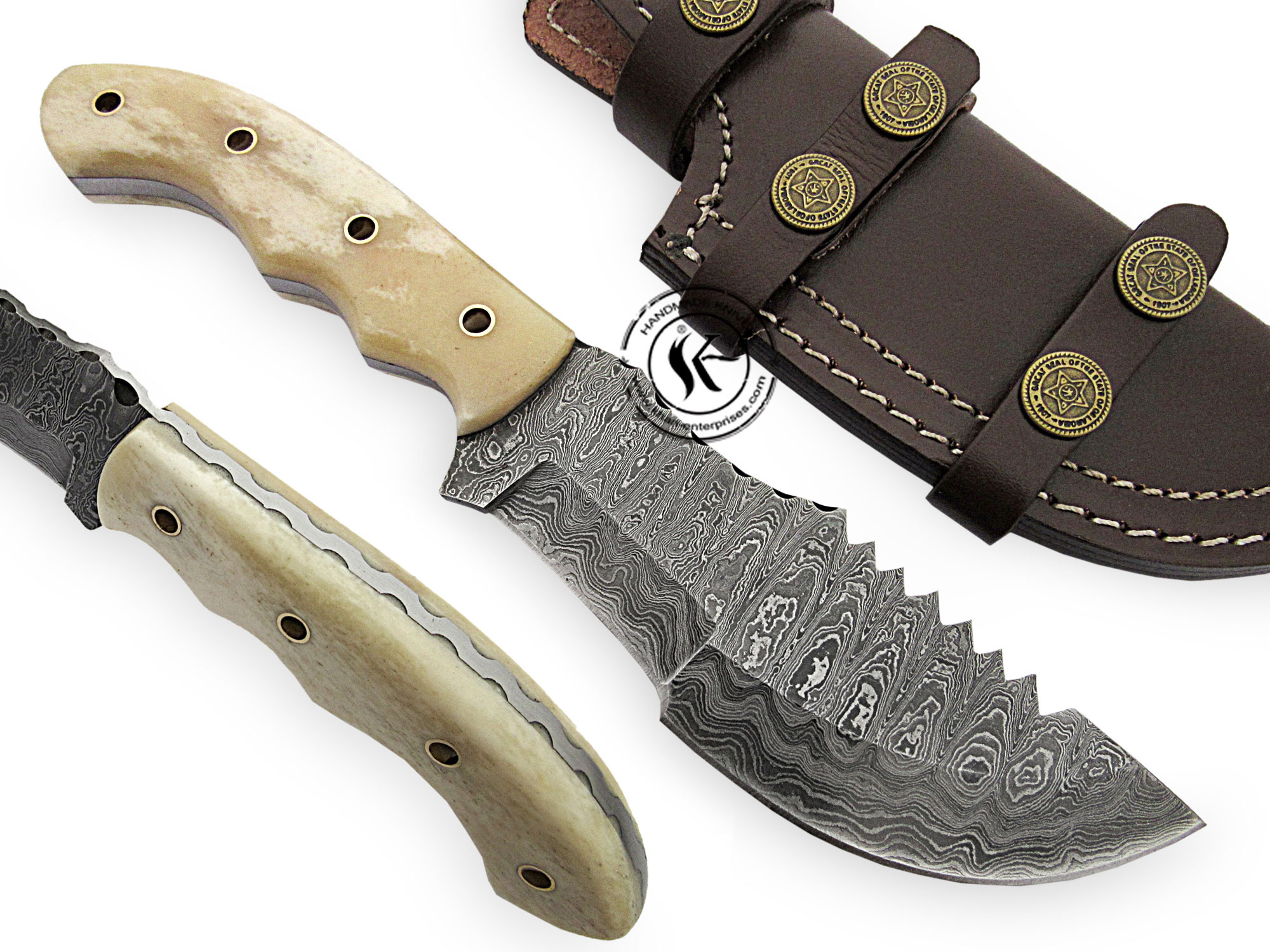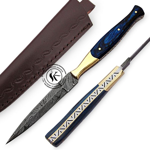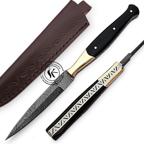 Beautiful Buffalo Horn Damascus Slim Dagger Hunting Knife